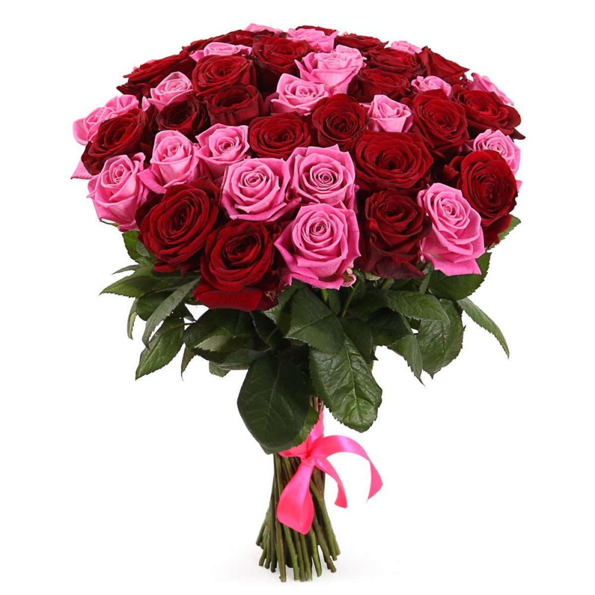 Букет из 55 красных и розовых роз