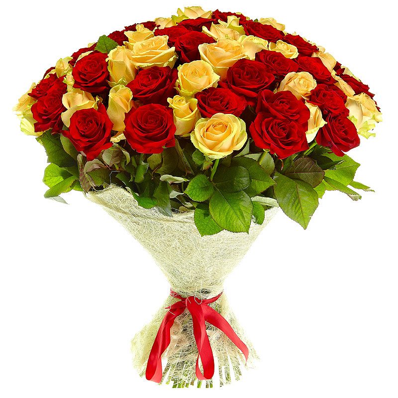 Букет из 55 красных и кремовых роз